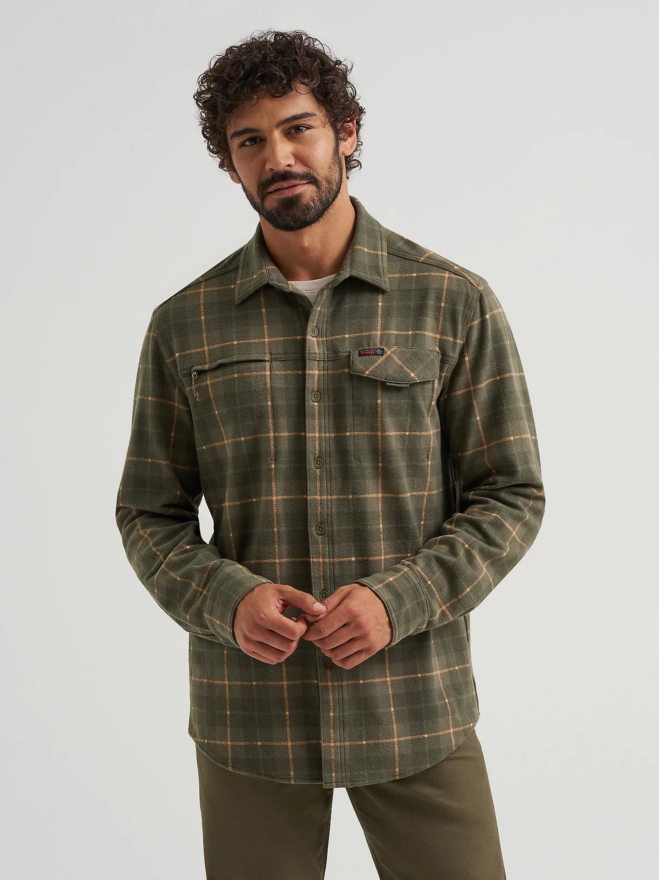 Whether you're exploring a new trail or busy setting up camp, the ATG by Wrangler™ men's campsite plaid shirt has you covered. This long-sleeve shirt is crafted from a comfortable blend of performance fabrics, with just the right amount of stretch to keep you flexible on the fly. It's also finished with UPF 30 to shield you from the sun and moisture-wicking technology to help you beat the elements at their own game. You'll have plenty of space to store your essentials between the left chest flap pocket and the right zip chest pocket. This classic plaid looks great with cargos.