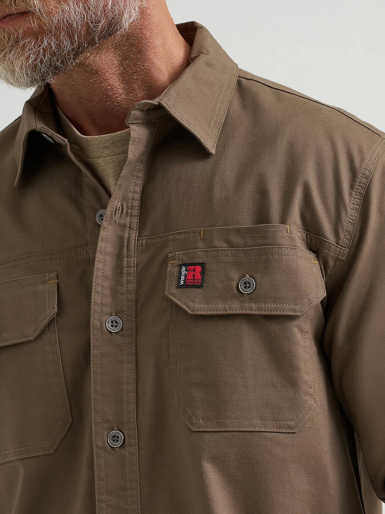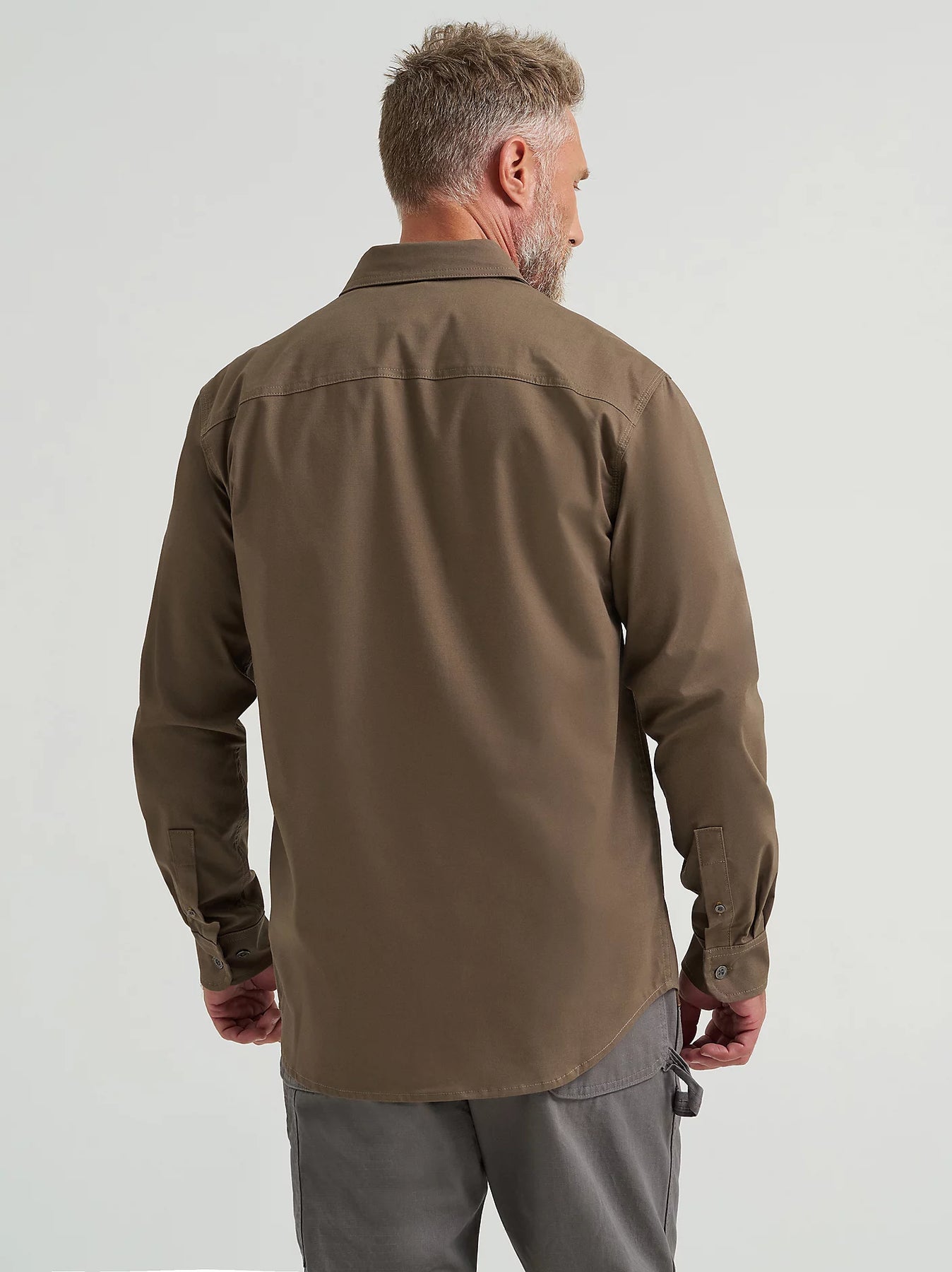 No matter what the day tries to throw your way, the Wrangler® RIGGS Workwear® Ground Cloth Work Shirt has your back. This classic collared long-sleeve shirt is crafted for advanced comfort from a durable cotton canvas blend you can wear all year long , on any job site. It comes with chest flap pockets, a drop-in pocket hidden at the yoke, adjustable cuffs, and a full button closure for easy layering.