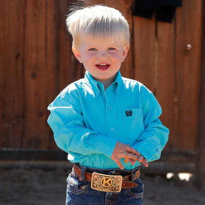 CINCH BOY'S SOLID TURQUOISE LONG SLEEVE WESTERN SHIRT