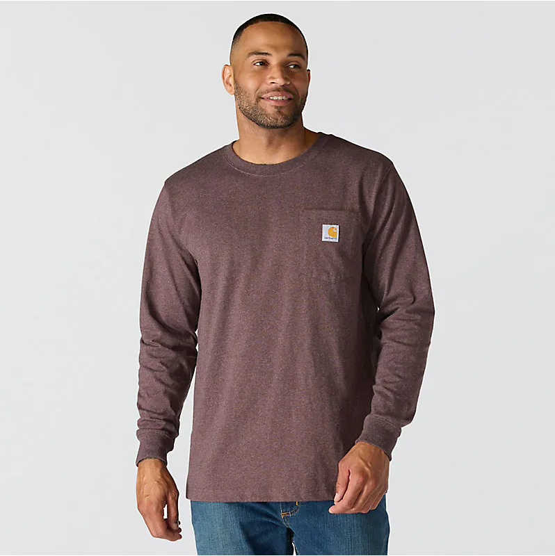 Job site, farm, or ranch, this men's long-sleeve pocket tee is a daily essential. The heavyweight cotton jersey stands up to the test of time, and its relaxed fit offers little extra room to move. The Carhartt C graphic says quality.
