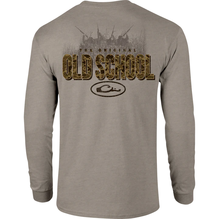 The Drake Long Sleeve Logo Graphic Tee is built with a 60% cotton and 40% polyester blend which supplies softness and comfort. The Drake OSO has the Drake logo on the front pocket and the Drake Old School Original graphic on the back, from our Long Sleeve Graphic Tee Series.
