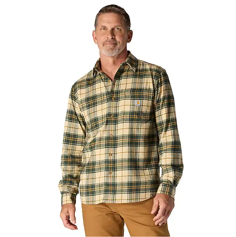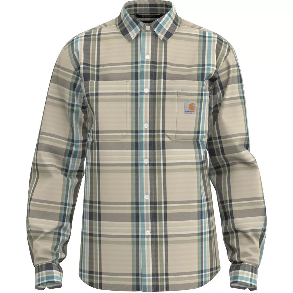 Made to be worn tucked or untucked, this men's plaid flannel shirt jacket features a midweight cotton blend with just the right amount of stretch for an unrestricted range of motion. A relaxed fit allows for easy layering and a natural range of motion.