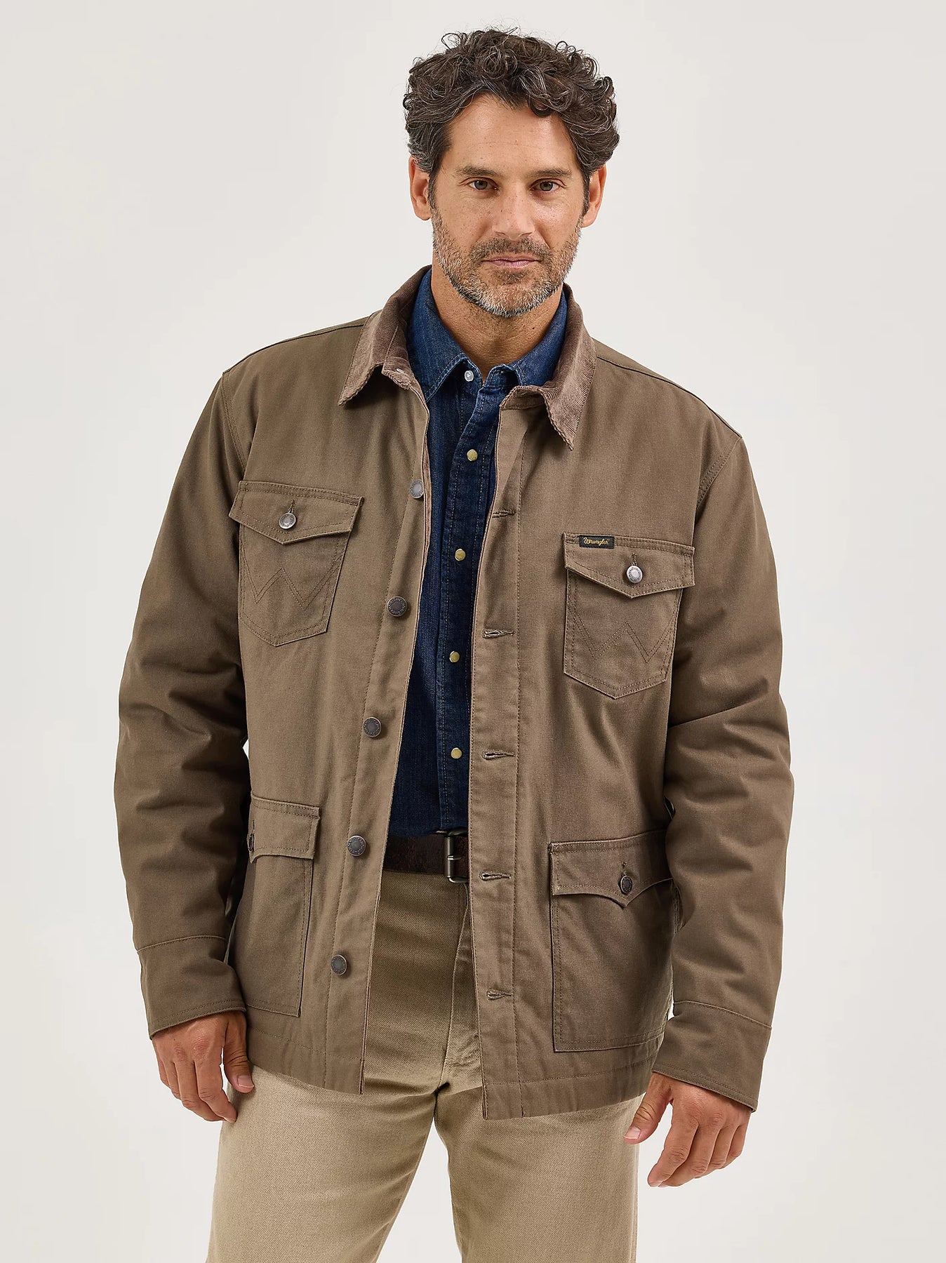 Cold weather and long days can't keep our Western Lined Canvas Barn Coat from helping you take care of every item on your to-do list. It's made of waxed cotton canvas for durability. It comes with a quilted flannel lining to keep you warm without weighing you down. You'll also have six total pockets for your essentials, a corduroy collar and cuff for extra comfort, Western styling, button front, and a relaxed fit.