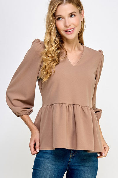 AUBRIE RUFFLE SHOULDER LONG SLEEVE BLOUSE