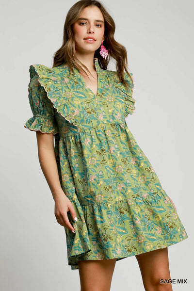 BECKY FLORAL BOARDER PRINT RUFFLE MINI DRESS