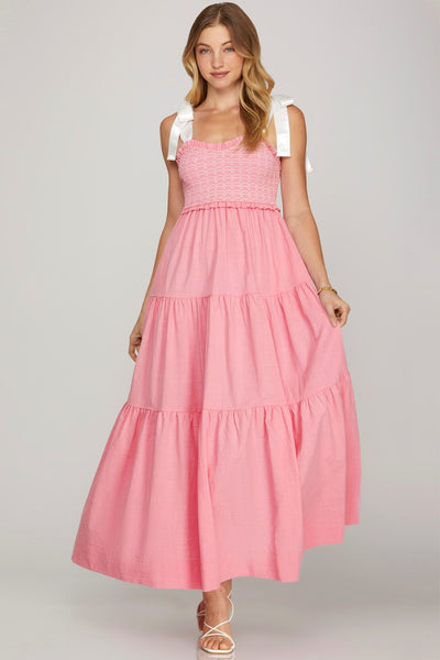 JENNY PLEATED SMOCK TIERED MINI DRESS
