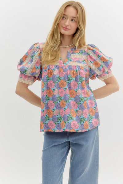 AIMEE FLORAL PRINT V-NECK BLOUSE