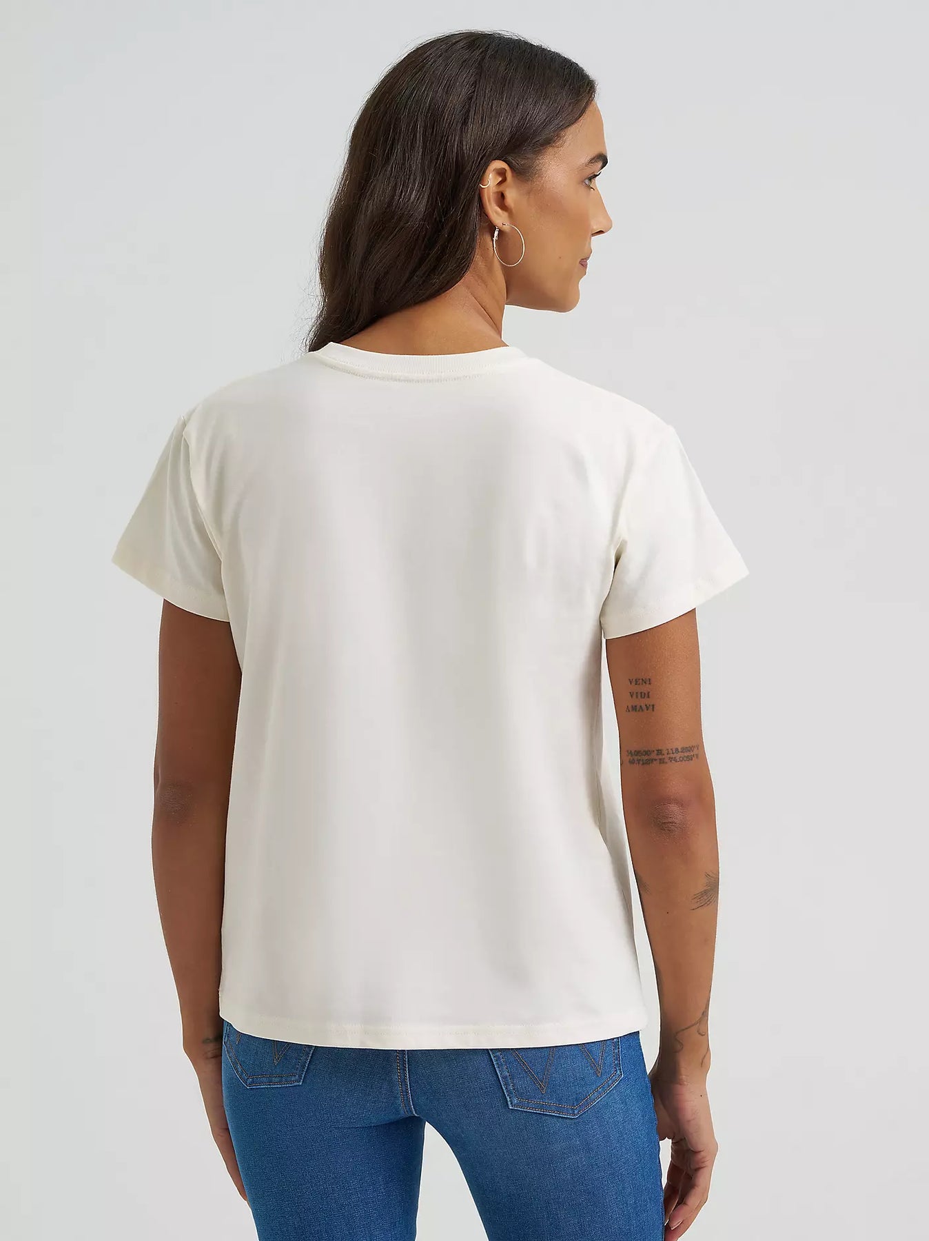 And if you're a big fan of cowboys, this retro-inspired tee is the one for you. It offers the look of a vintage find with “Long Live Cowboys” in Wild West lettering and a detailed Southwestern scene. It’s cut with a straight silhouette, a non-fitted waist, capped sleeves, and dropped shoulders. Nothing goes better with your Wrangler® denim than a classic crewneck. Long Live Cowboys®