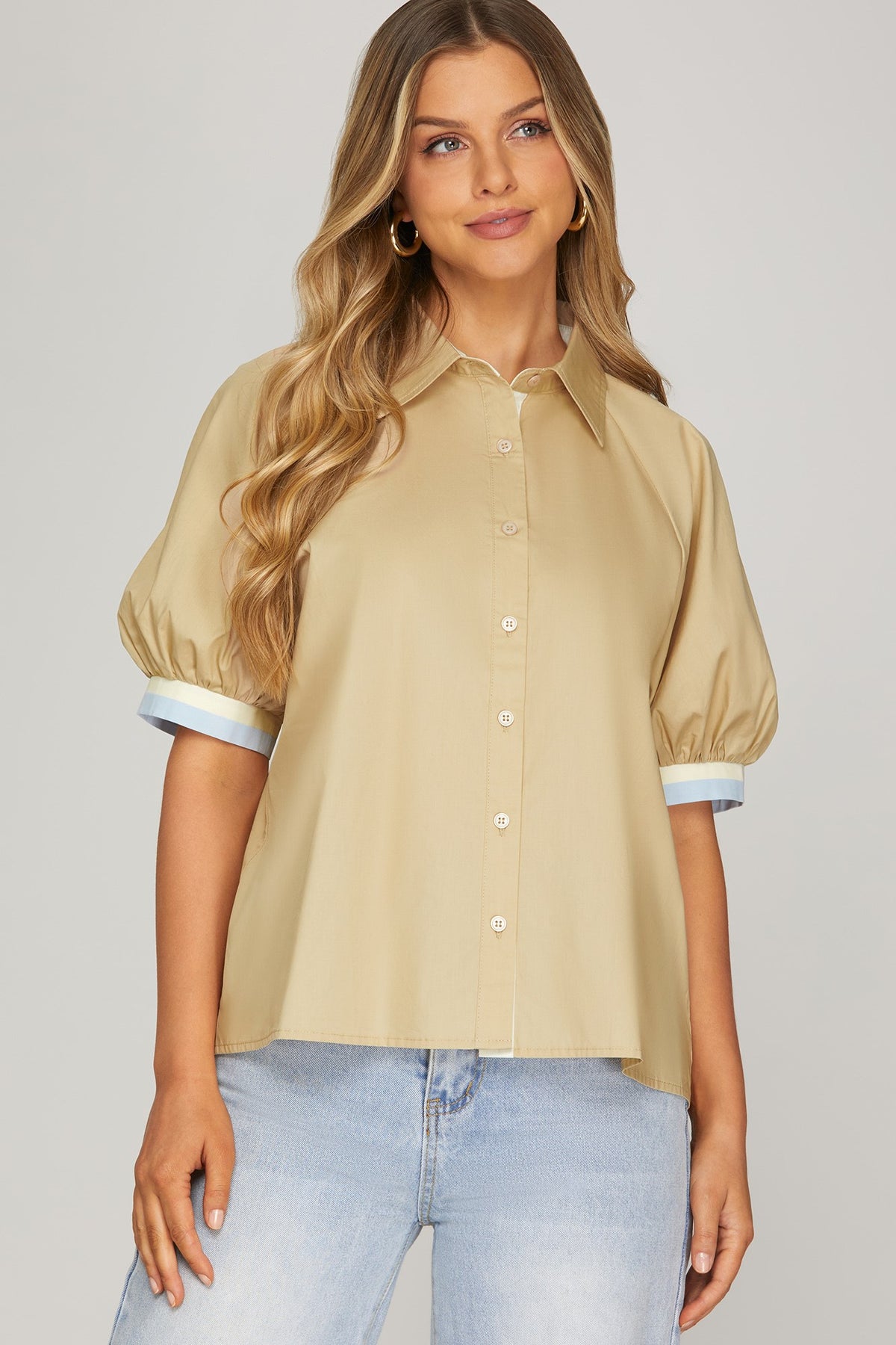 1/2 SLEEVE BUTTON DOWN TOP