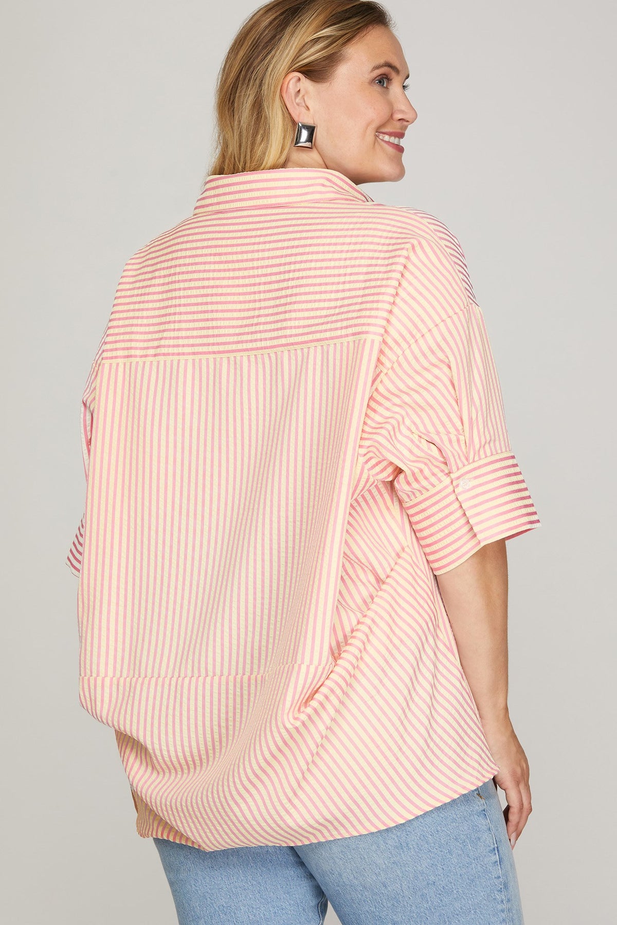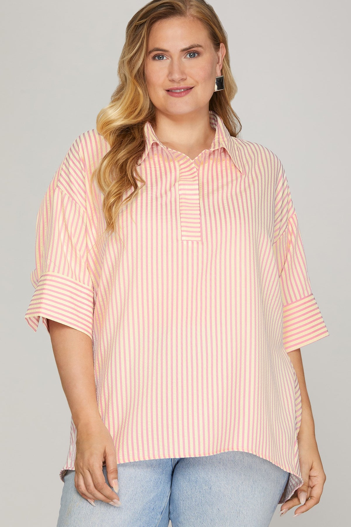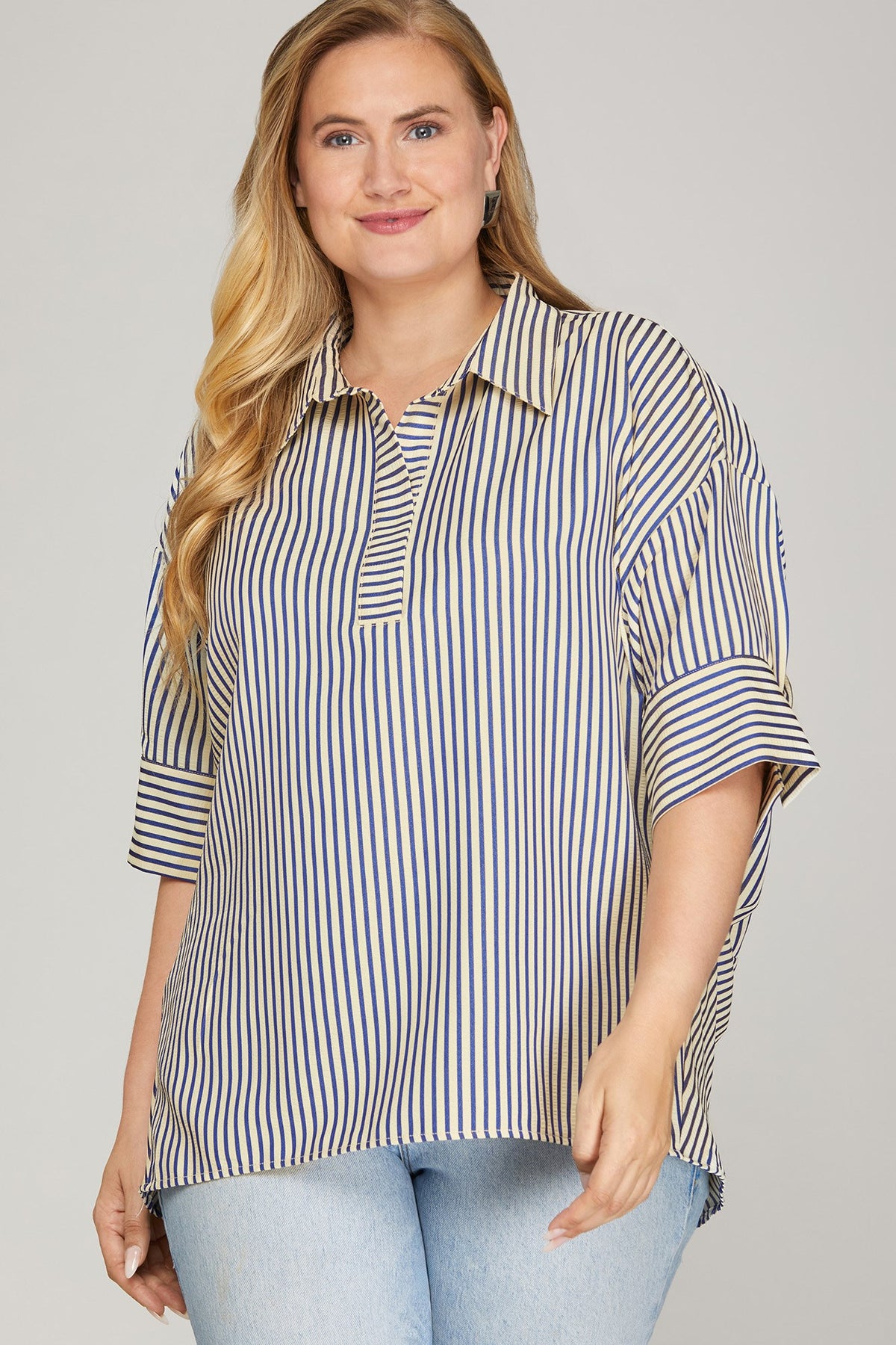 PLUS SIZE SHORT SLEEVE OVERSIZED STRIPED TOP