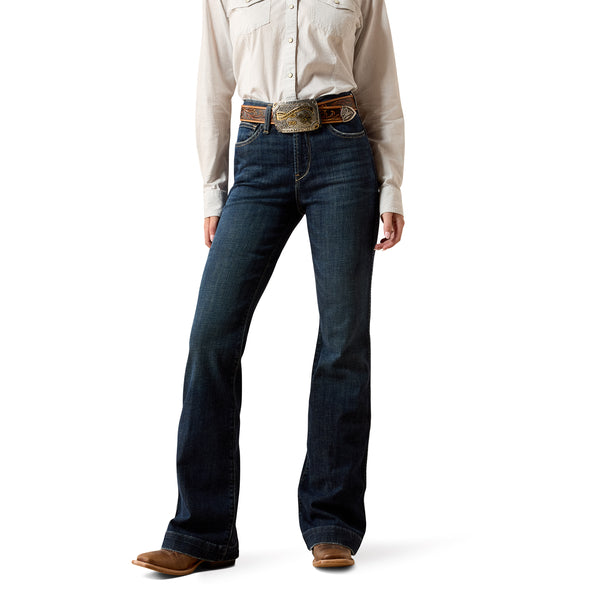 A dark wash that keeps dirt out of sight and clean lines create a polished fit that flatters. Performance-ready and trend-right, these jeans work beautifully in the arena and also look amazing on a night out.