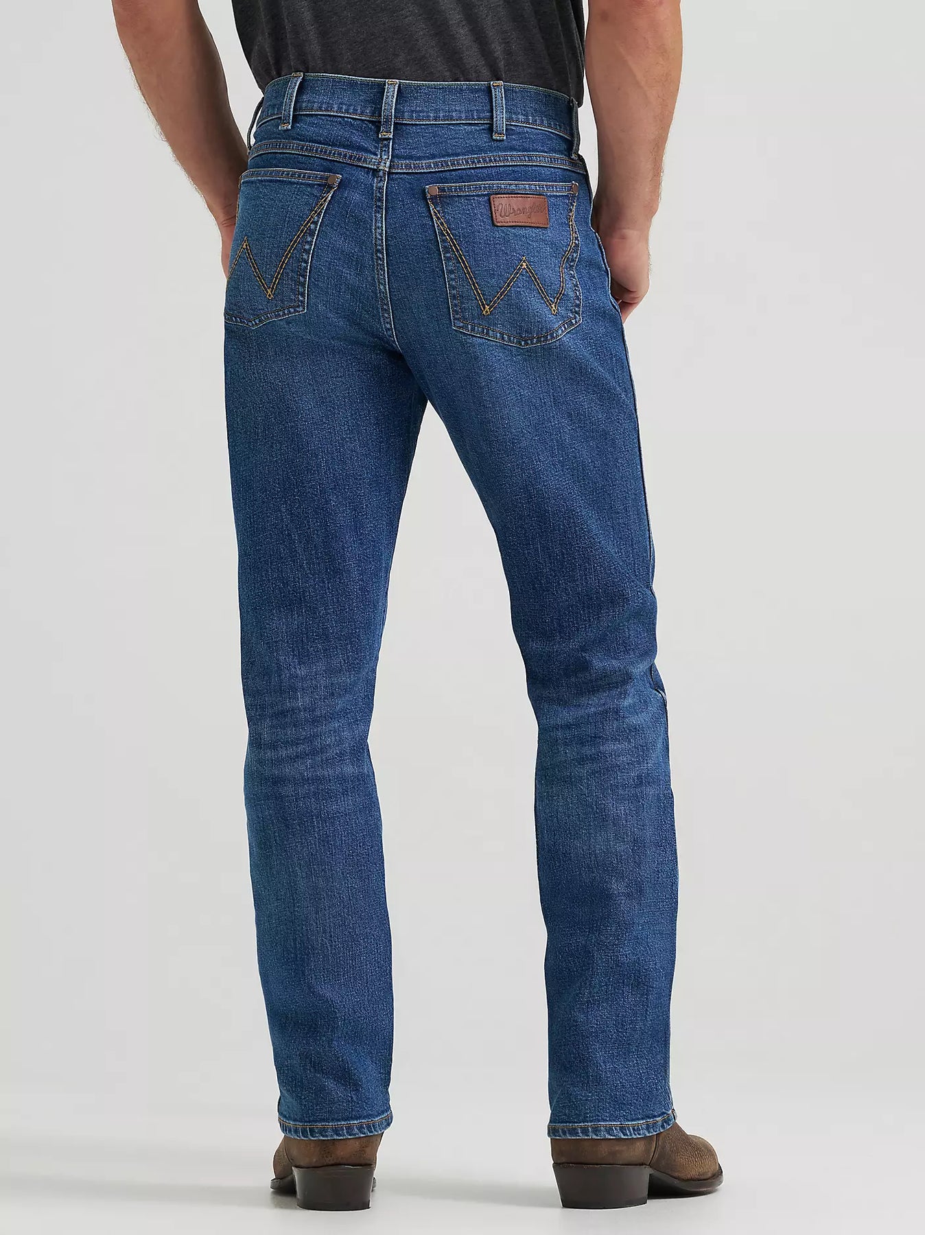 Wrangler® Retro® slim fit jeans nod to our history while introducing fits and washes suited for the modern cowboy. Designed with a closer fit and leg opening that still falls comfortably over boots, our men's Wrangler® straight leg slim fit jeans add extra style to the classic look you love. These jeans sit low on the waist and make it easy to show off your favorite belt buckle. That design detail is our Western heritage showing through, something that happens often with the Wrangler® Retro® collection.