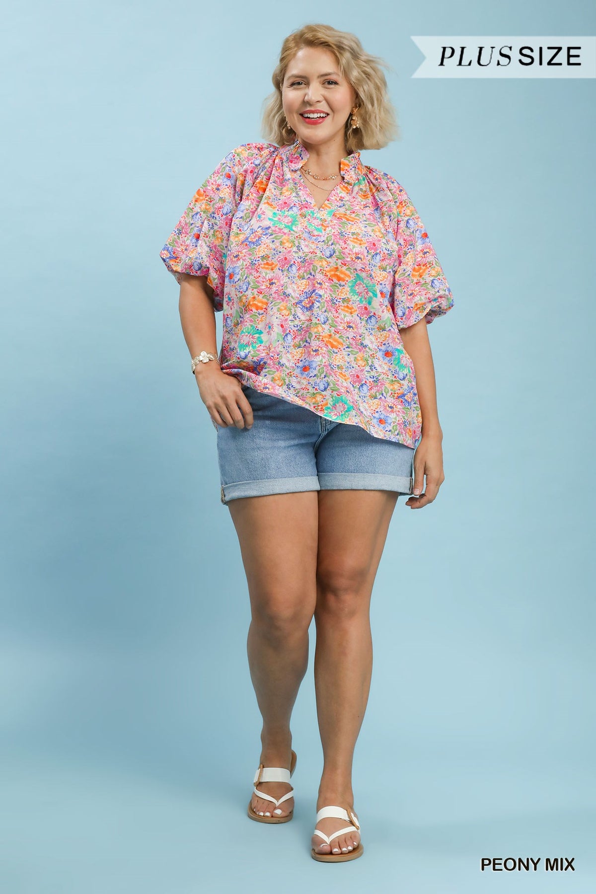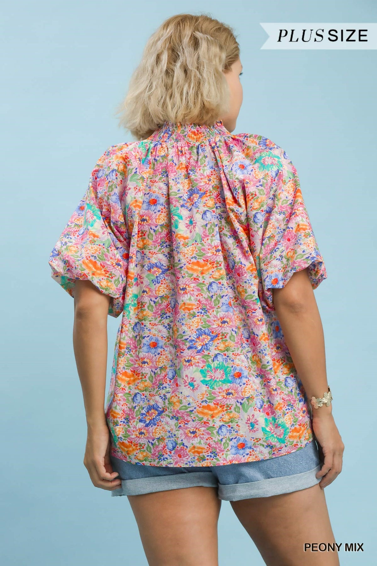 Mix Floral Short Sleeve Button-Front Top